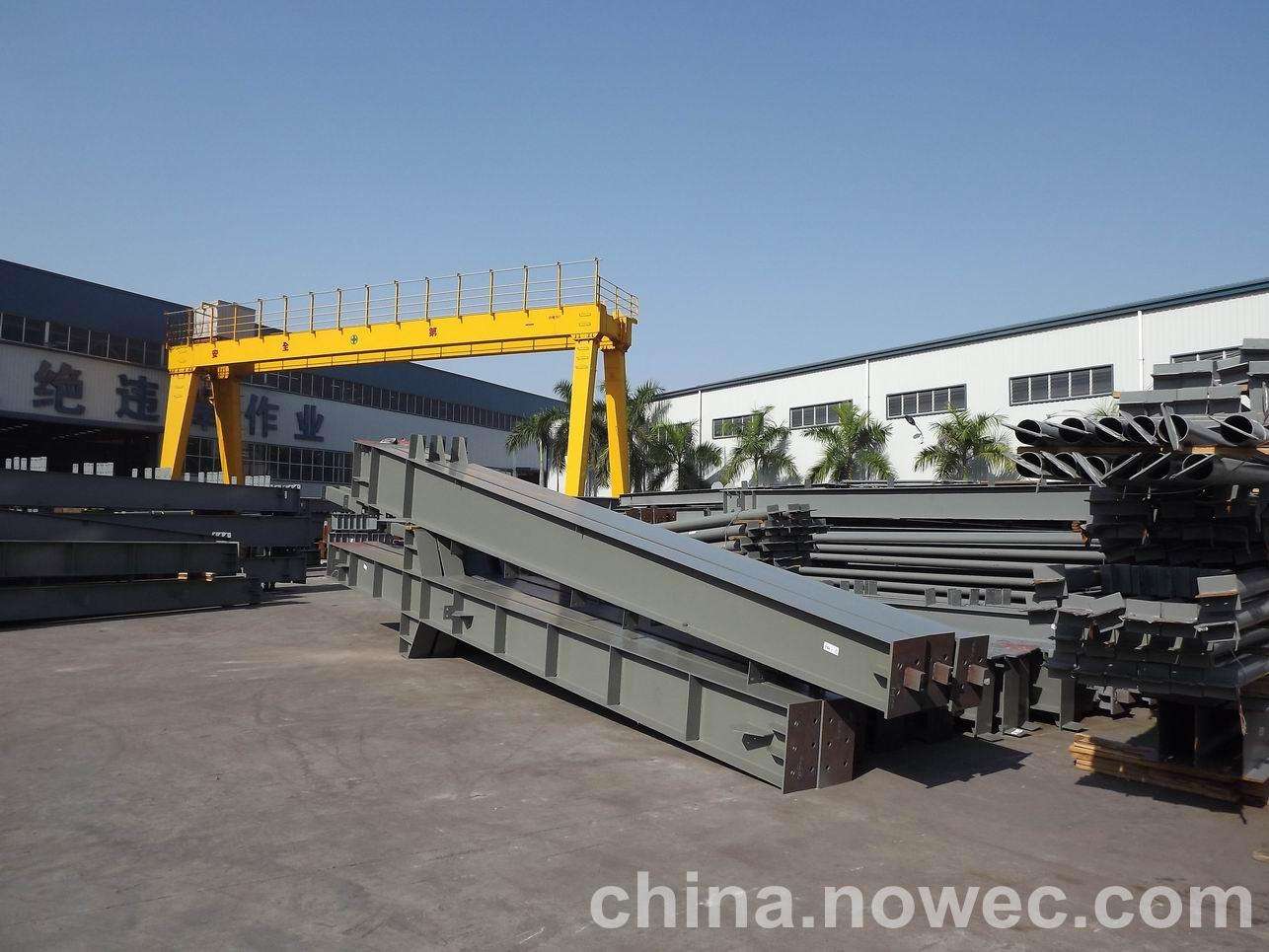 条状单元一般沿长跨方向分割,其宽度约为1~3个网格,其长度为l2或l2/2(l2为短跨跨距)。块状单元一般沿崇明网架平面纵横向分割成矩形或正方形单元。每个单元的重量以现有起重机能胜任为准。条(块)与条(块)之间可以直接拼装,也可空一网格在高空拼装。由于条(块)状单元是在地面拼装,因而高空作业量较高空散装法大为减少,拼装支架也减少很多,又能充分利用现有起重设备,故较经济。这种安装方法适用于分割后网架的钢度和受力状况改变较小的各类中小型网架,如两向正交正放四角锥、正放抽空四角锥等网架。